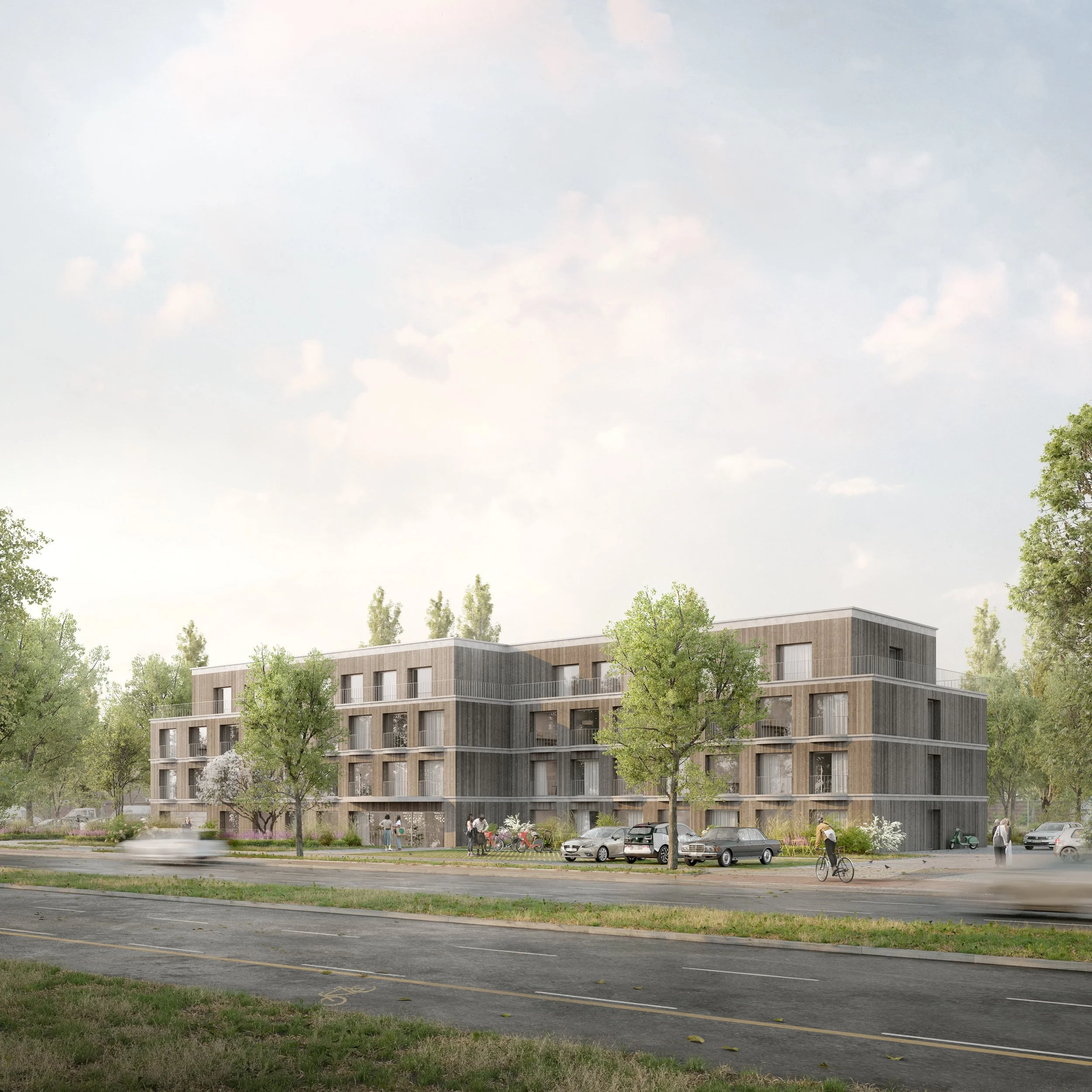 Unsere Hotelplanung versteht sich als Tor zur Stadt – ein Bed & Breakfast, das Ankommen leicht macht. Es empfängt Reisende aus aller Welt und ist Verbindung zwischen BER und Innenstadt. Die Architektur reflektiert diese Offenheit. Eine ruhige Gliederung, natürliche Materialien und ein nachhaltiges Fassadenbild schaffen Vertrauen und Orientierung. Die angesrtrebte kombinative Bauweise ermöglicht nicht nur effizientes Bauen, sondern auch langfristige Flexibilität für den Betreiber.